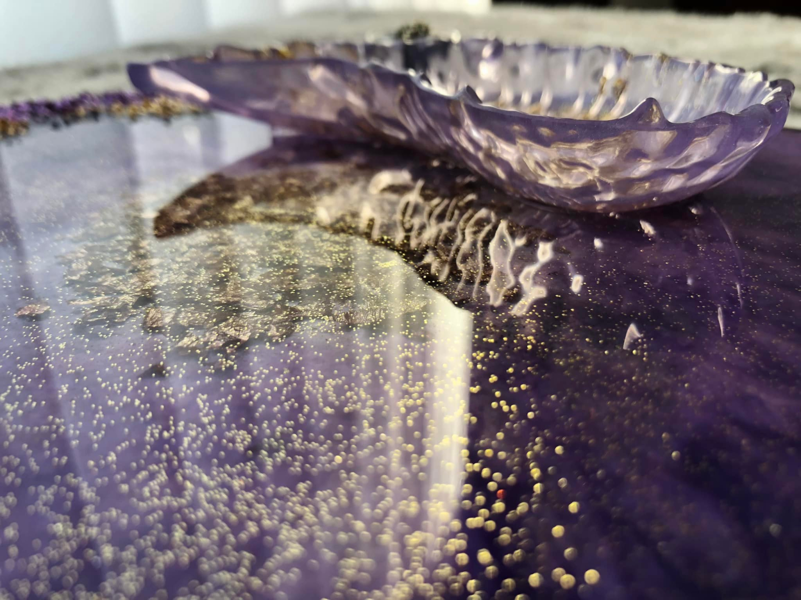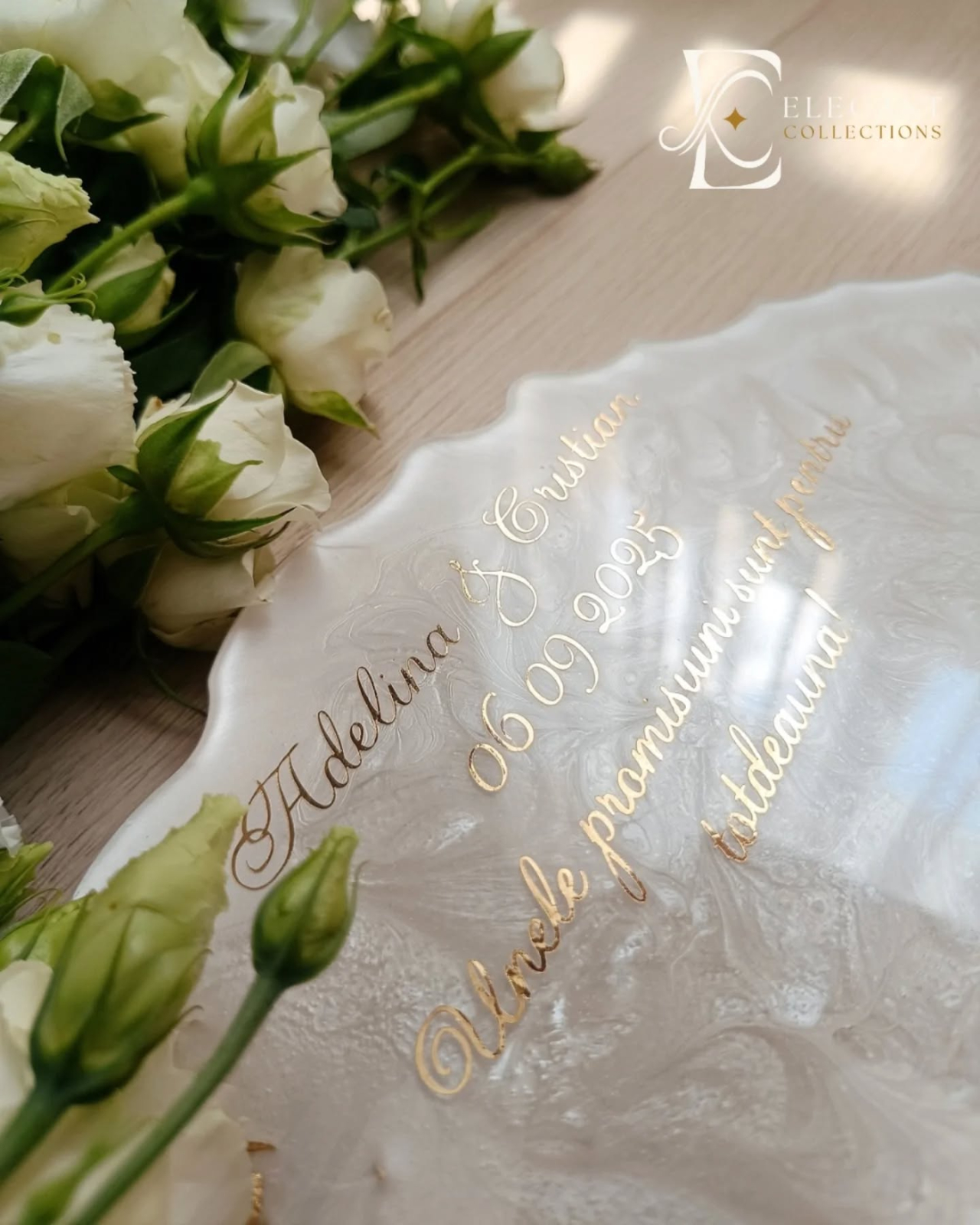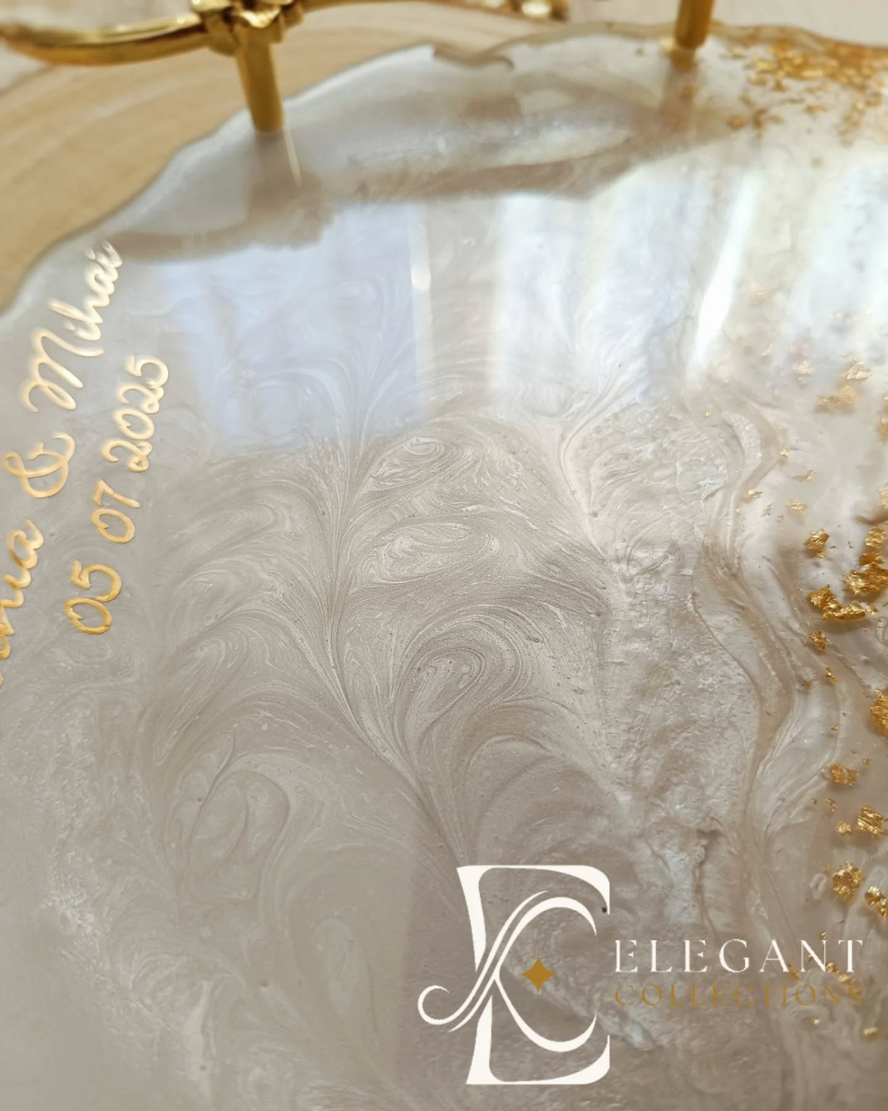 Platou handmade din rășină epoxidică – unicat (25–33,5 cm), ideal ca piesă decorativă sau pentru servire elegantă, cu opțiuni de personalizare și finisaje premium. Creat manual în România.