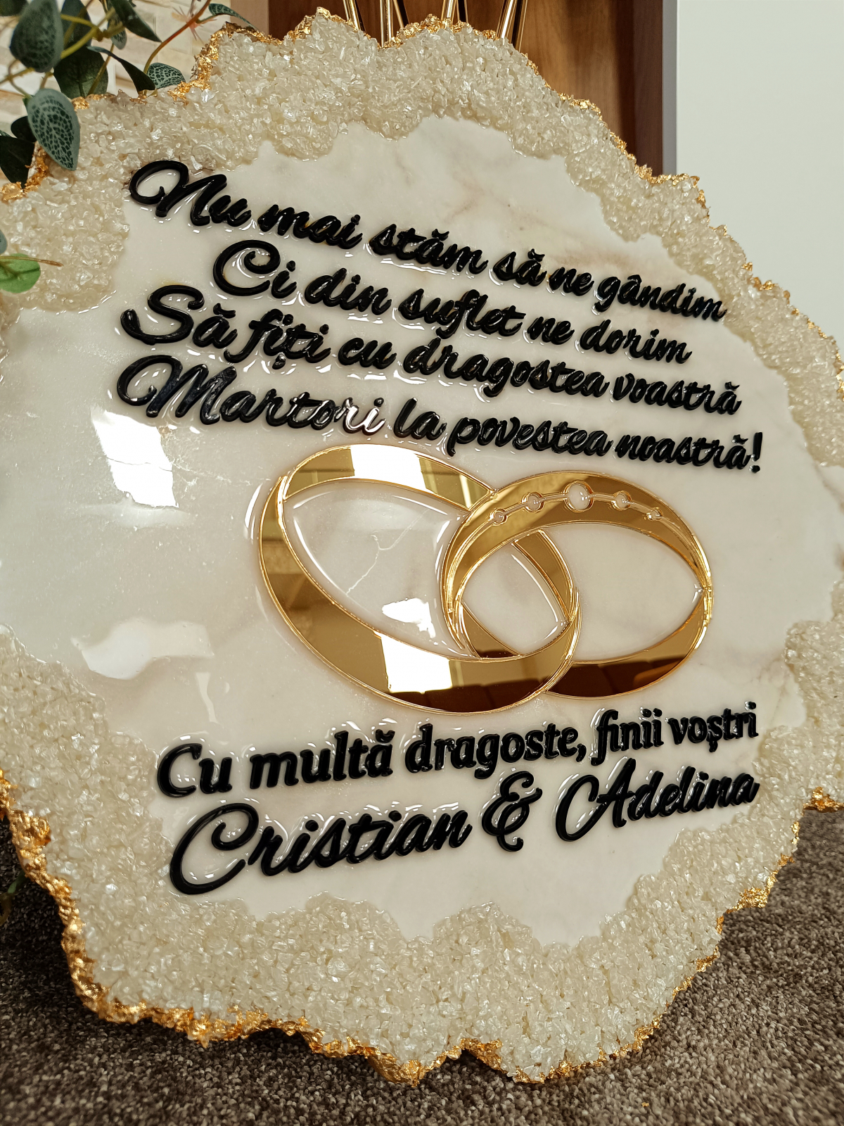 Pe fiecare tablou poate fi aplicat un text personalizat din plexiglas – un mesaj de suflet, o dedicație sau un citat special, care să vorbească direct celor dragi: nași, părinți, dascăli sau prieteni apropiați. Astfel, tabloul devine un cadou memorabil și încărcat de semnificație.